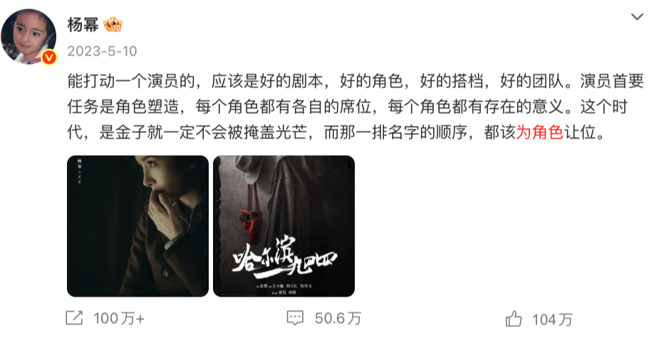 杨幂微博谈番位和角色
