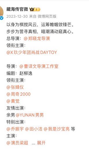《藏海传》官宣微博