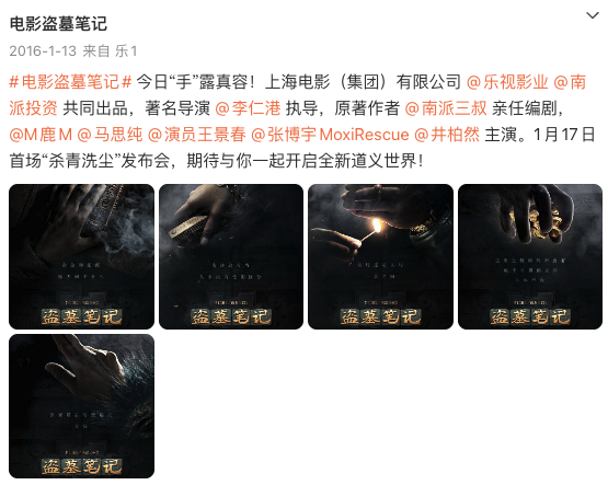 《盗墓笔记》电影官宣阵容微博