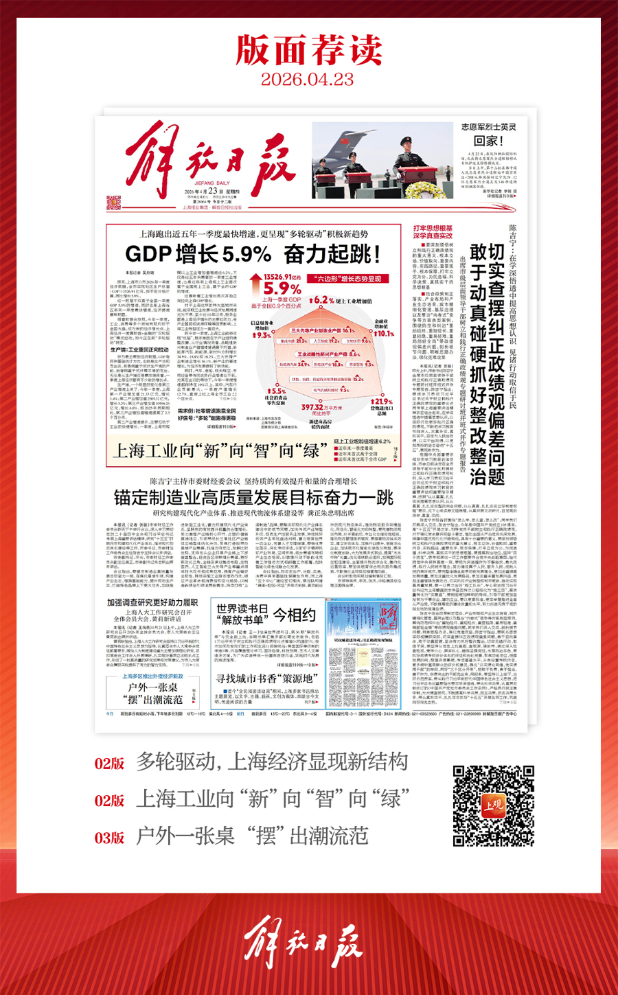 早上好!上观新闻『早读』来啦!今天是2026年4月23日星期四,农历三月初七。